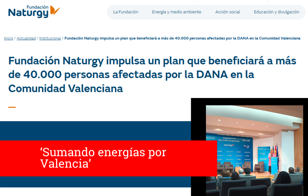 Fundación Naturgy ha puesto en marcha el programa ‘Sumando energías por Valencia’, un plan que beneficiará a más de 40.000 personas afectadas por la DANA que azotó la Comunidad Valenciana en octubre de 2024.