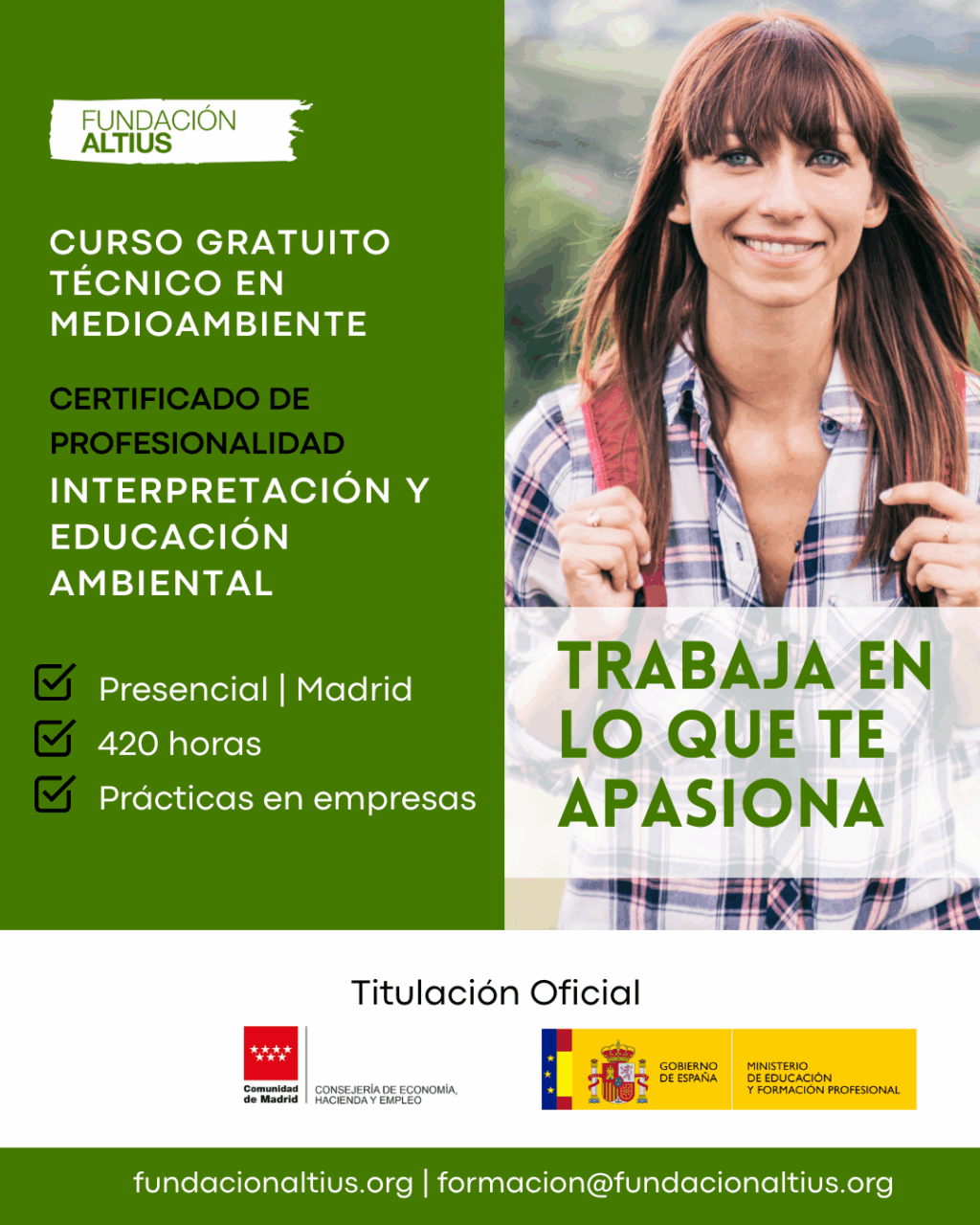 Certificado de Profesionalidad INTERPRETACIÓN Y EDUCACIÓN AMBIENTAL CURSO GRATUITO QUE TE ABRIRÁ LAS PUERTAS AL EMPLEO COMO: EDUCADOR AMBIENTAL, GUÍA AMBIENTAL, MONITOR DE NATURALEZA Y ESPACIOS AMBIENTALES INICIO: 09/03/2026 FIN:…